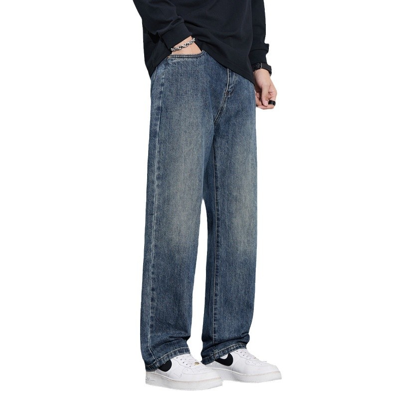 Loose straight plus velvet denim trousers trendy and versatile American retro casual trousers